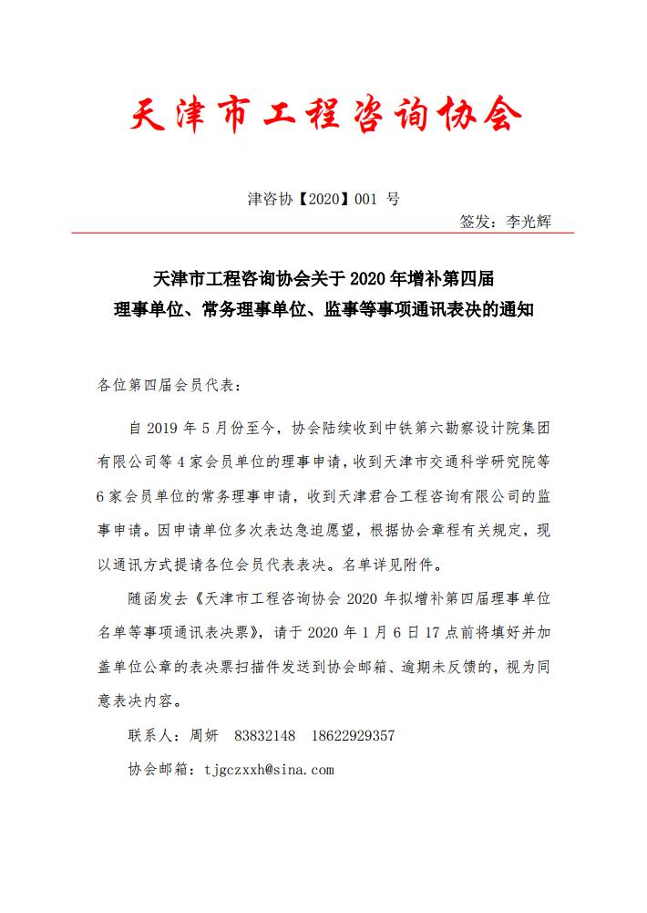 【下一篇】天津市工程咨询协会负责人任职前公示